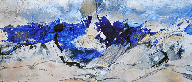 […] Immer beginnt sie aus dem Dunkel unter der Erde hinauf über die Berge und in den Himmel wachsend. Unter der Erde gibt es eine enorme Verdichtung, kein wirkliches Schwarz, da sind Rillen und Gänge, kleine Vektoren wie etwa ein Pfeil, blauschimmernde Wasserkavernen vielleicht und verwittertes Moosiges.