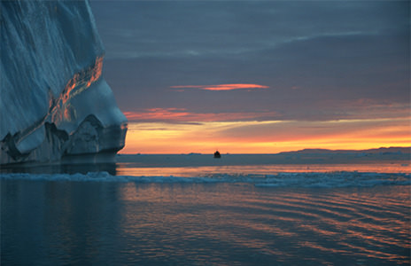 Breite 77 Grad 28´ Nord. Qaanaaq, auch Thule genannt, nach weiteren 30 Stunden bei kabbeliger See erreicht. Zur Ankunft ist der Kirchenchor an Bord gekommen. Wunderschön in Nationaltracht gekleidet, mit farbenfrohen Blusen die Frauen, die Männer mit schneeweißen Jacken und alle in beinlangen Eisbärfellstiefeln, die sie in der Wärme des Salons höllisch ins Schwitzen bringen. Fast eine Stunde singen sie sehr leise Weisen, zuletzt das Unter¬gangslied der „Titanic“, „Nah zu dir mein Gott“. Als das Schiff die Bucht von Quaanaaq um ein Uhr morgens verlässt, kommt schon wieder ein fahles rötliches Tagesleuchten über den Horizont. Ein ultramarinblauer Eisberg von seltener Schönheit schiebt sich vor das Salonfenster und lässt Quaanaaqs Existenz zwischen Wasser, Eis und Gletschermassen verschwinden.